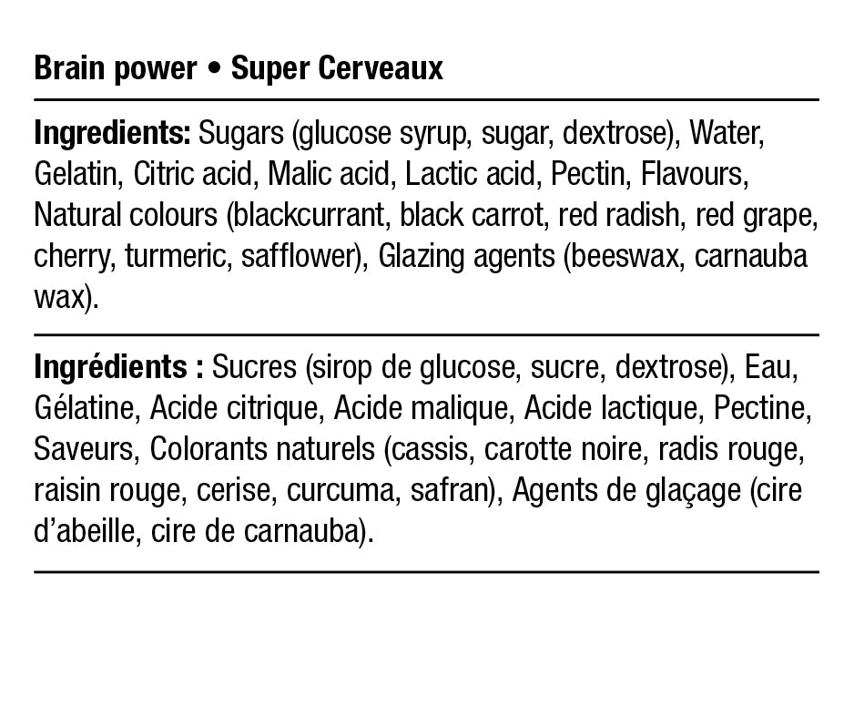 Manger des cerveaux, ça doit rendre plus intelligent, non? C’est une bonne chose, parce que Super cerveau est un trio vedette créé dans nos labos de bonbons top secret dans des saveurs terriblement délicieuses telles que pêche, citron et fraise. Ouvrez votre esprit (littéralement) et voyez ce dont tous les fantômes et goules raffolent!